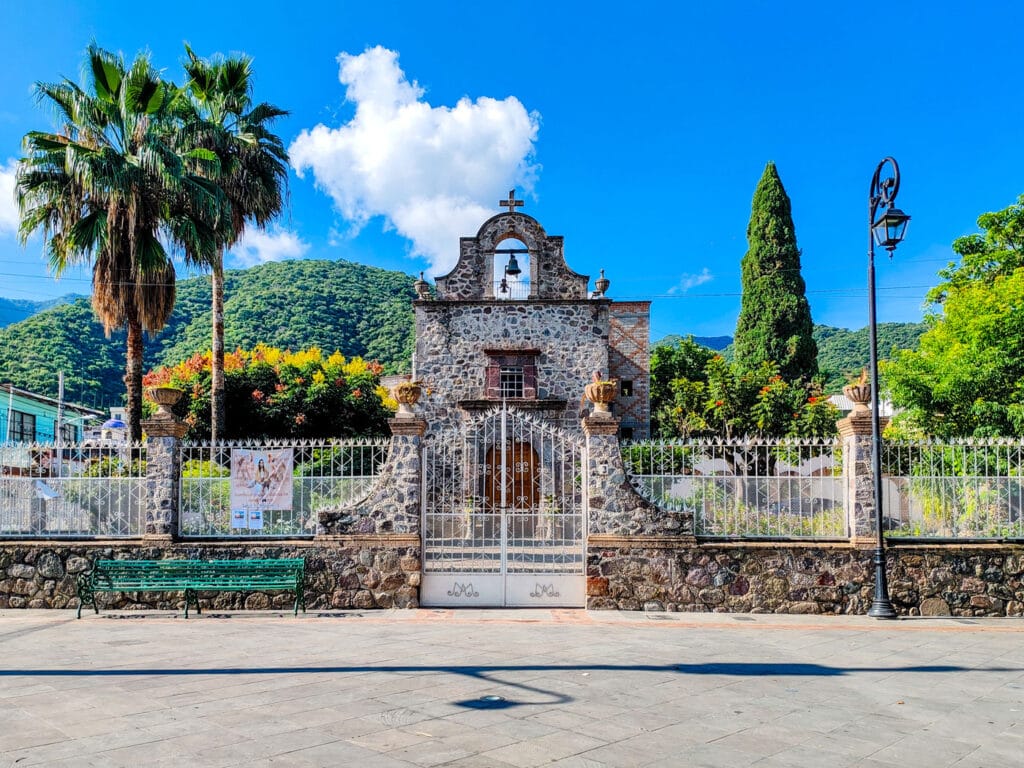 Junto a la plaza se encuentra uno de los edificios más emblemáticos de Ajijic: la Capilla de la Virgen del Rosario. Construida en el siglo XVI, es considerada una de las construcciones religiosas más antiguas de la región. Su fachada de piedra y su interior sencillo pero solemne son un reflejo del pasado colonial del pueblo.